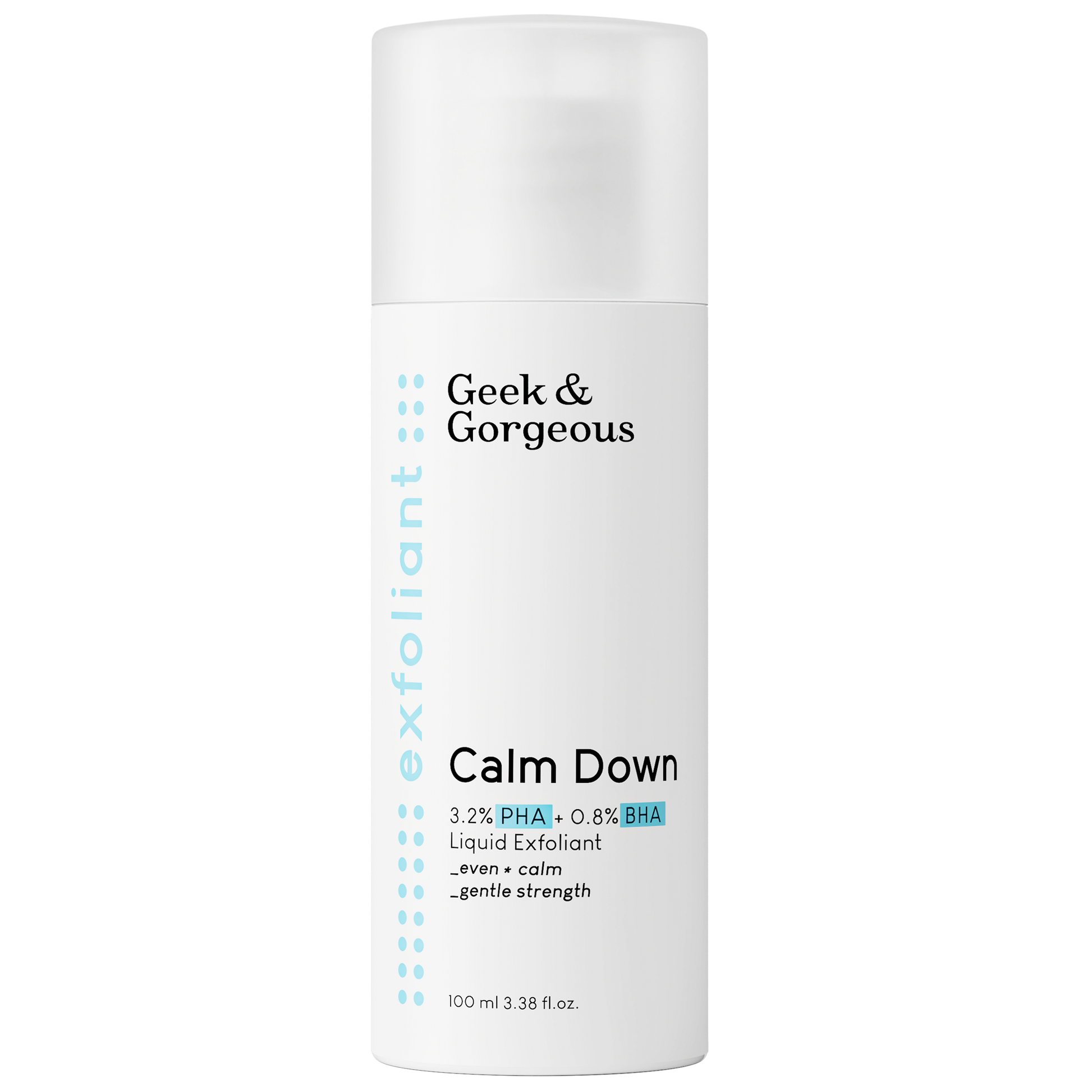 Calm Down; çok hassas, kızarıklığa yatkın ciltler için tasarlanmış, son derece nazik bir sıvı eksfoliyandır. Formülde bulunan PHA asitleri; ölü deri hücrelerini nazikçe uzaklaştırırken aynı zamanda nemlendirme ve antioksidan koruma sağlar. BHA (Salisilik Asit) ise yağda çözünen, anti-enflamatuar özellikleriyle bilinen yumuşak bir eksfolianttır.